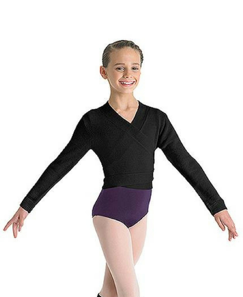 Chaquetita clásica de manga larga para Danza, de punto, larga, cruzada por delante y se ata por detrás