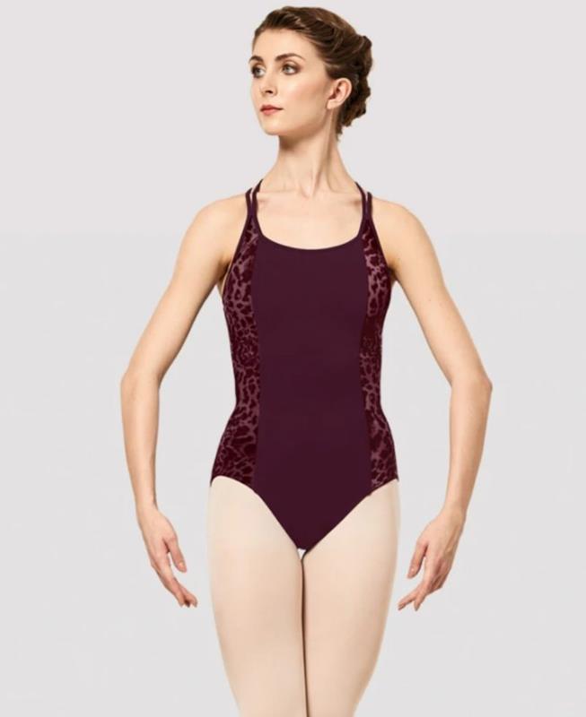 Nuestro leotardo Kiara para mujer cuenta con finos tirantes dobles tipo camisola, espalda abierta con escote bajo y tirantes cruzados y paneles laterales de malla. Parte de la colección BLOCH Wild con malla elástica con estampado animal y paneles de contraste diseñados para realzar la forma de la ba...
